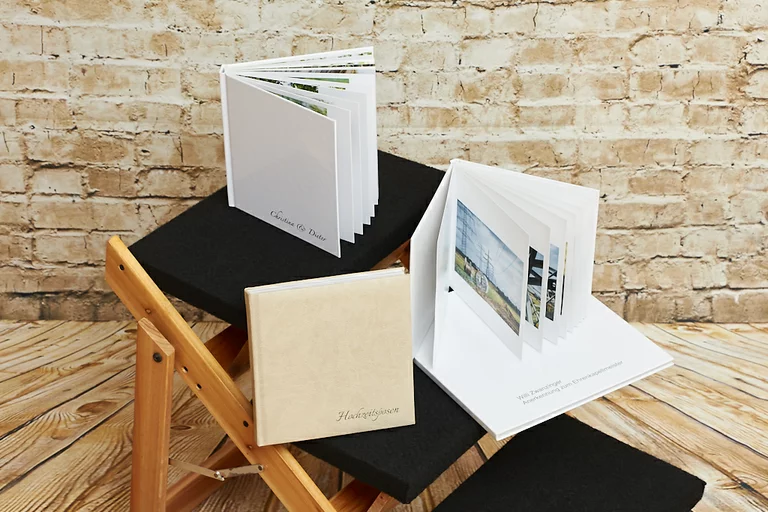 Elegantes Leder, feine Seide, Fine-Art Paper, extra breite Seiten, Glanzfinish oder matter Effekt und durchwegs eine brillante Bildqualität. Ein kunstvoll gestaltetes professionelles Fotobuch verpackt eure schönsten Erinnerungen und macht diese zu etwas ganz besonderem.